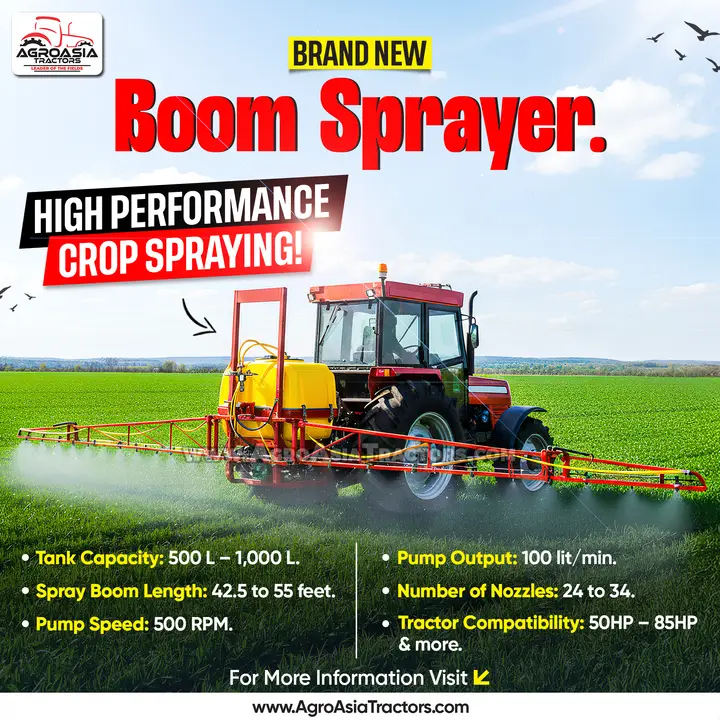 • Boom sprayers: Useful throughout all crop stages for applying pesticides, nutrients, and foliar sprays.